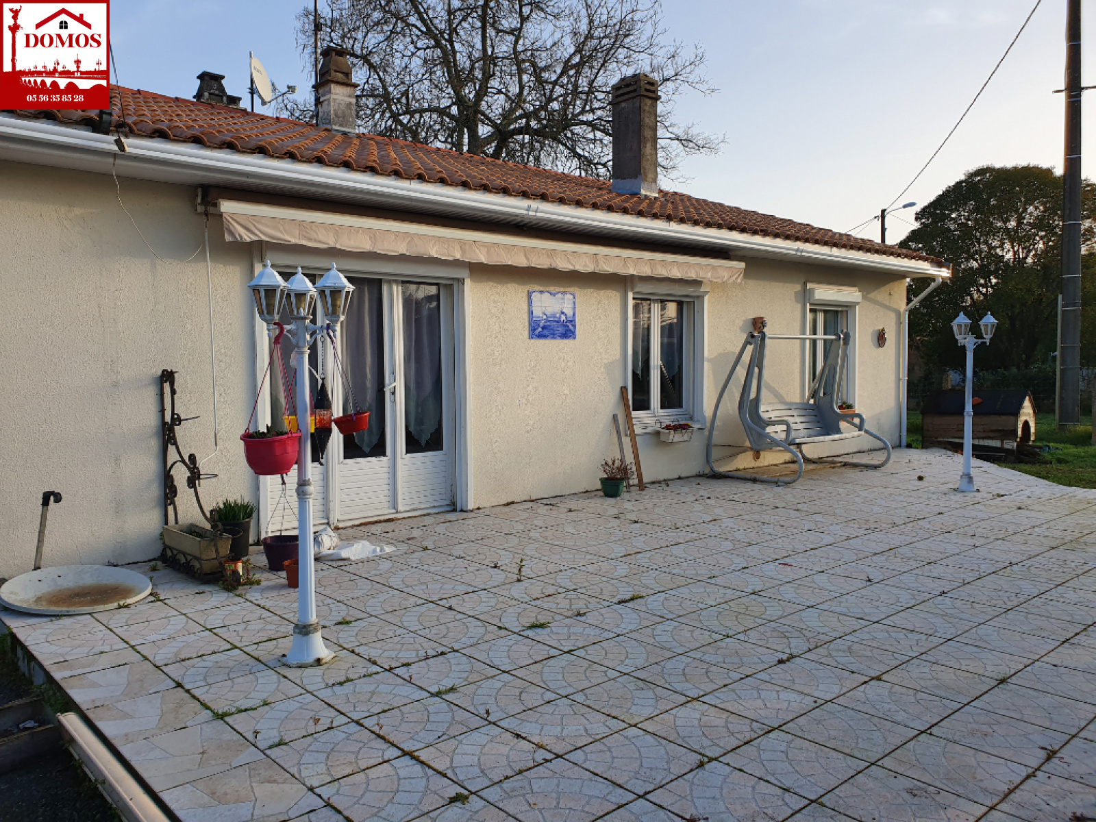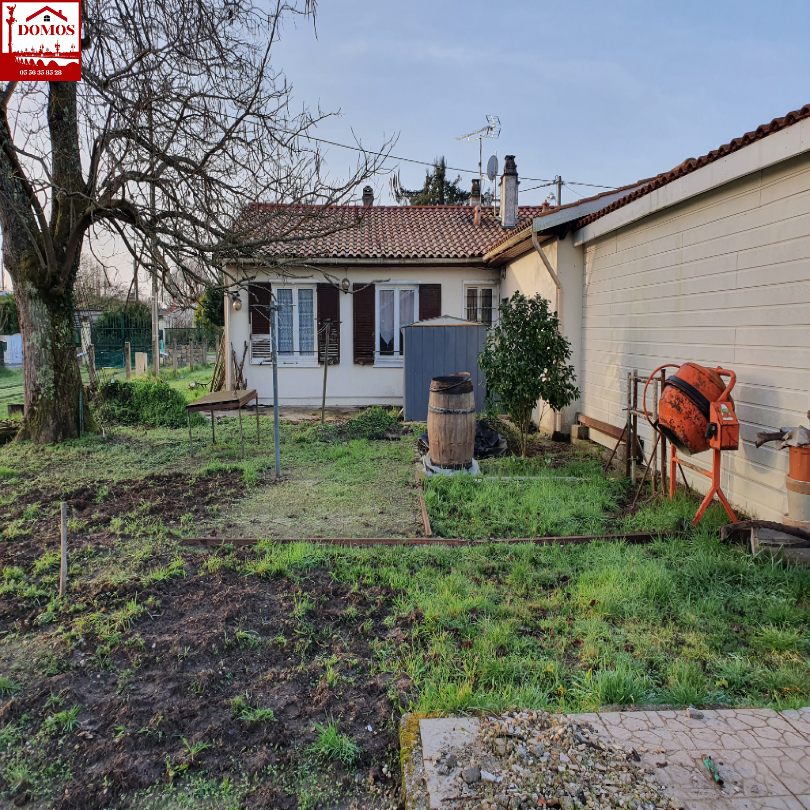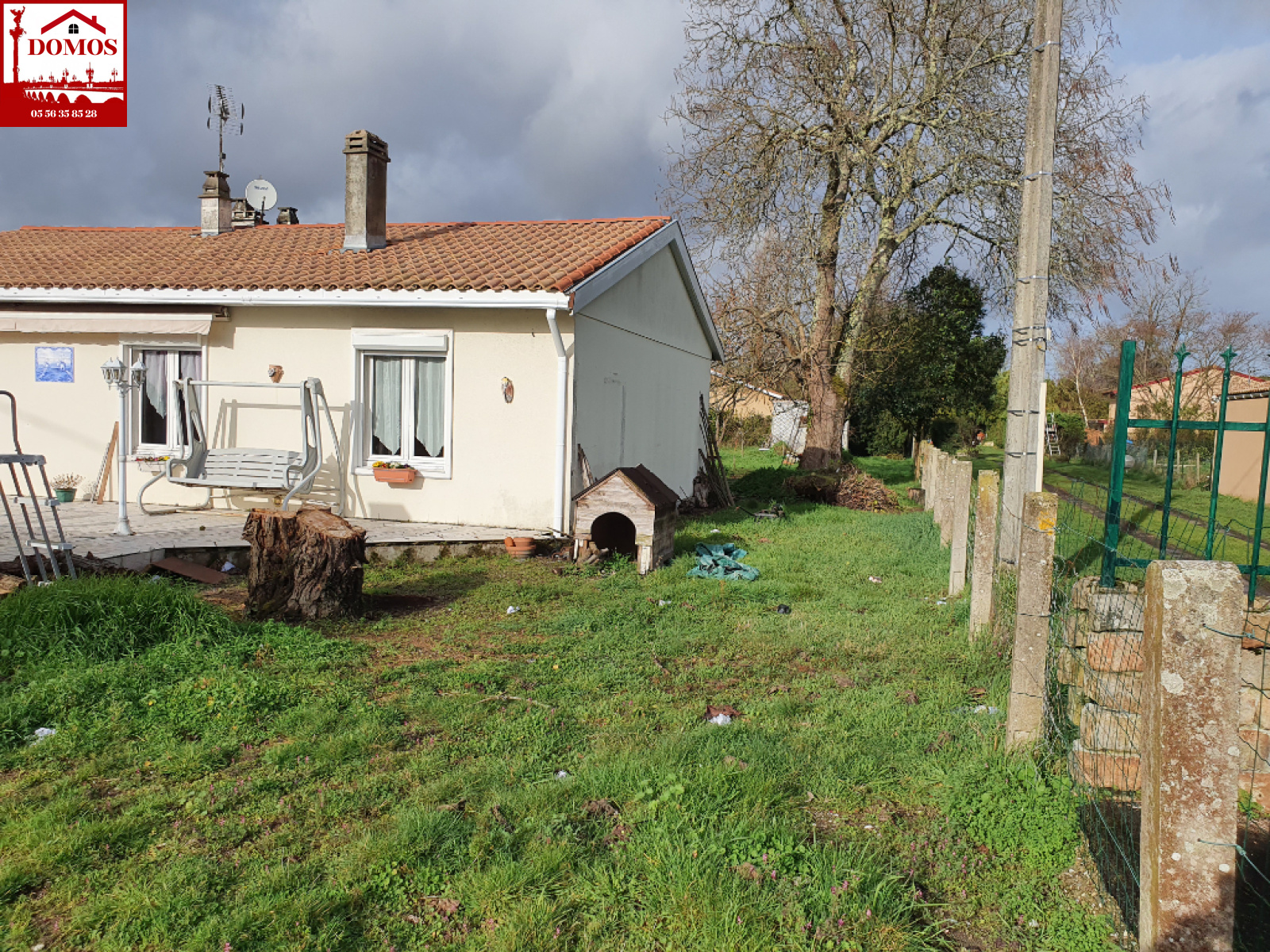 EN EXCLUSIVITÉ Le Pian Médoc, Maison de plain pied de 85 m² comprenant entrée, séjour avec cheminée, cuisine, 3 chambres, SDB, WC, cellier de 30 m² env et garage attenant , le tout sur une parcelle de terrain de 1218 m².